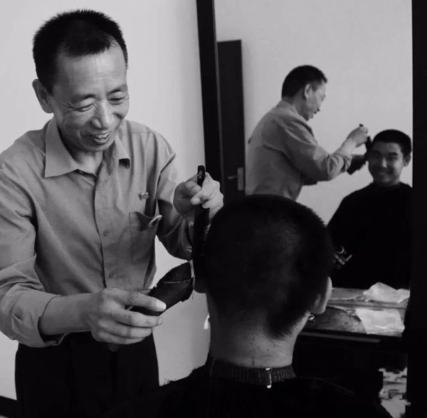 沈汝波到部隊(duì)為戰(zhàn)士理發(fā)